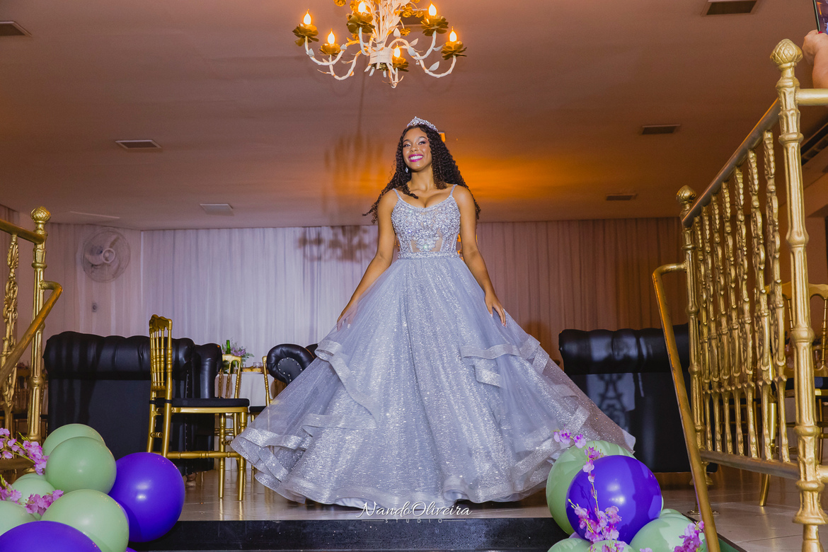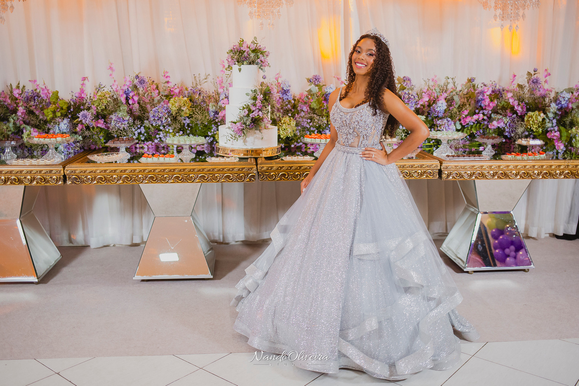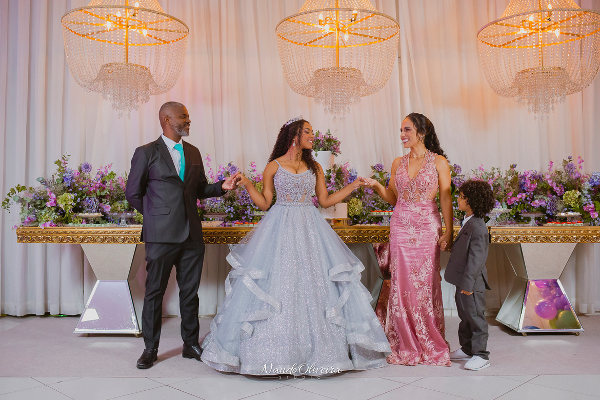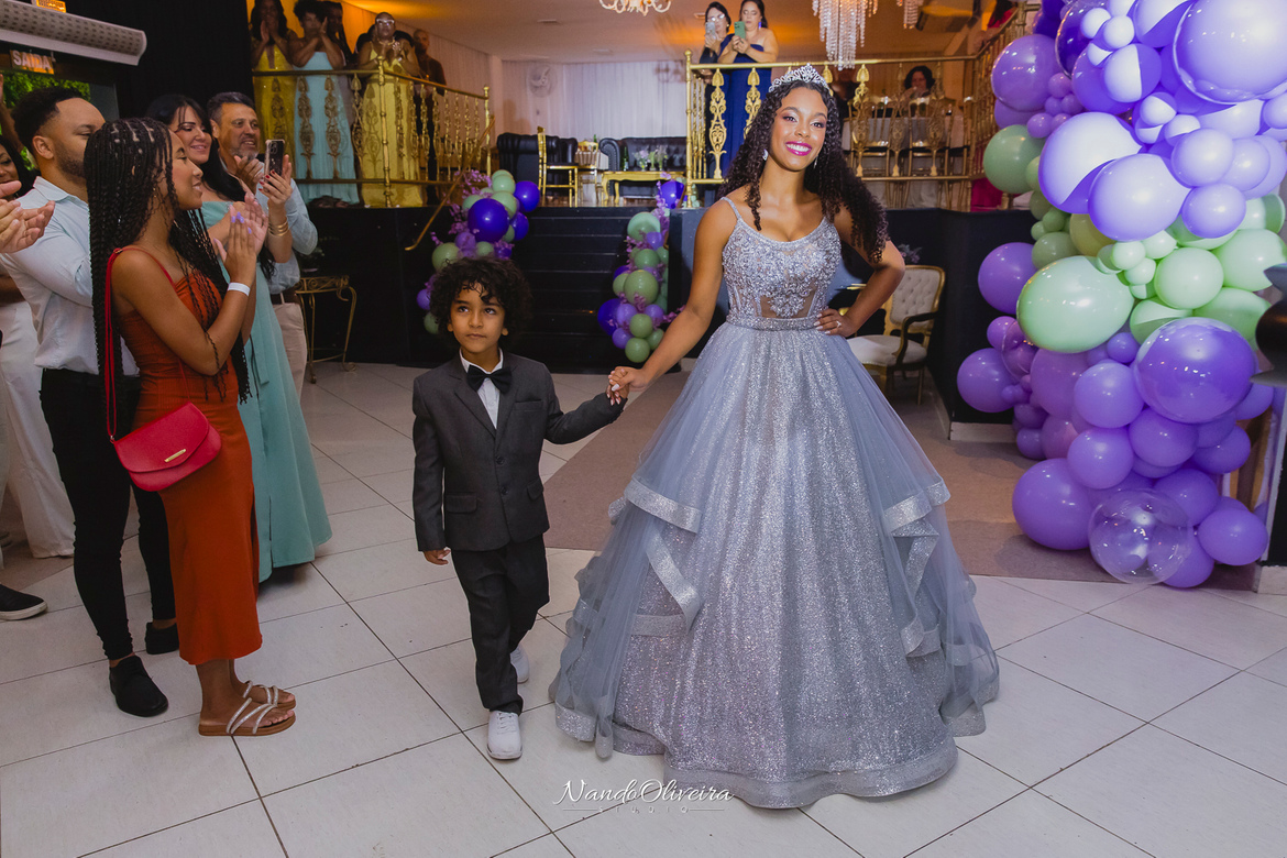 Uma noite simplesmente linda, daquelas que ficam na memória. O salão estava cheio, rodeado de amigos e familiares que fizeram questão de celebrar cada momento ao lado dela.