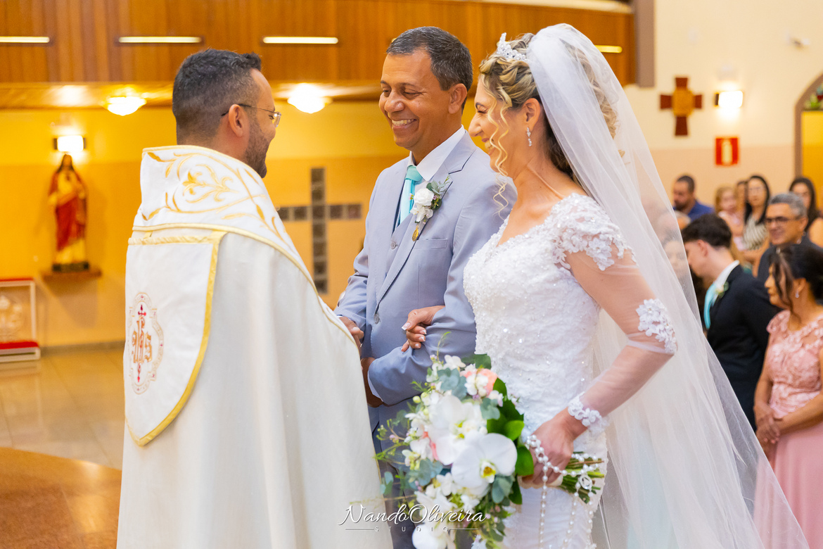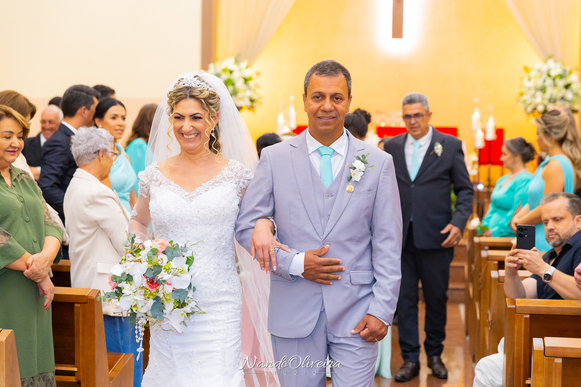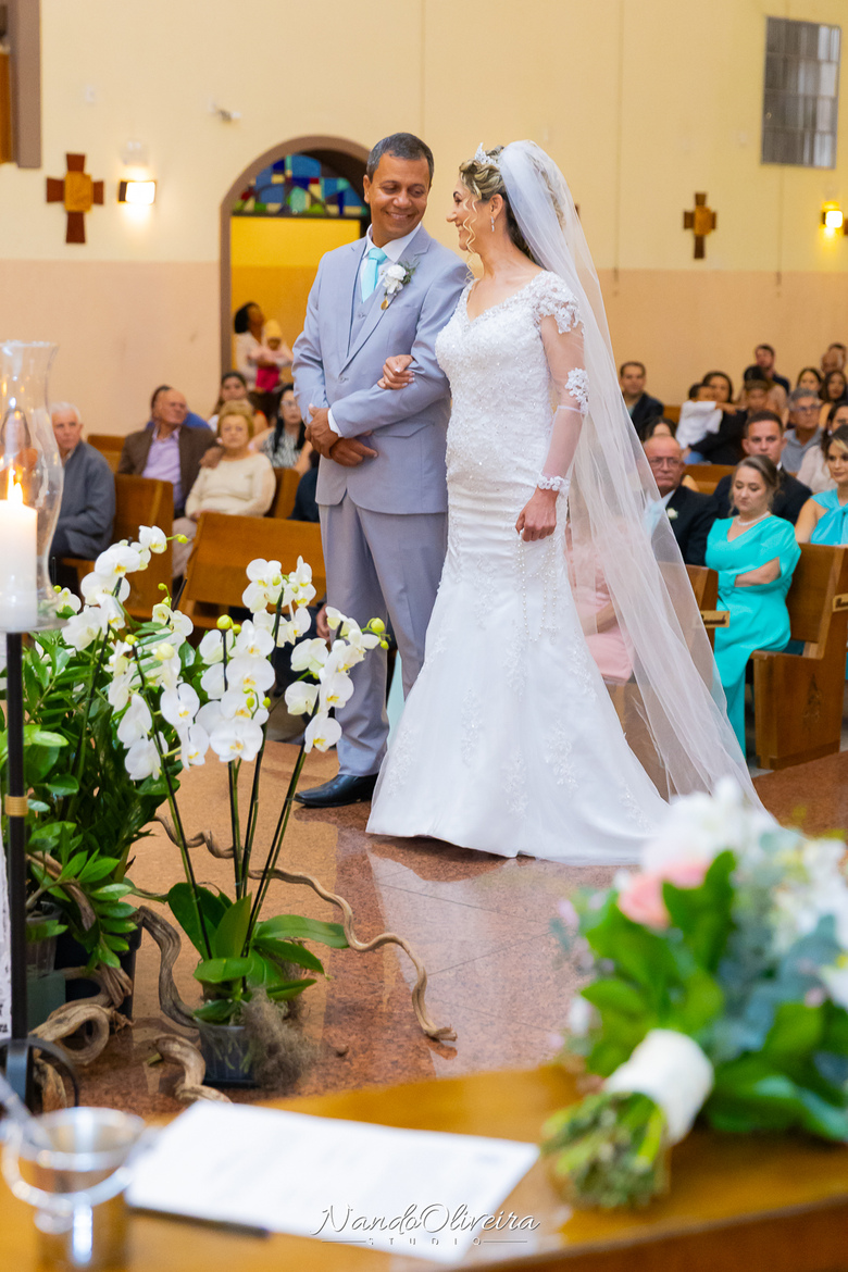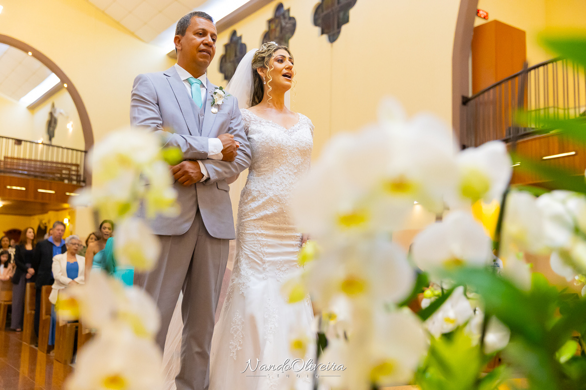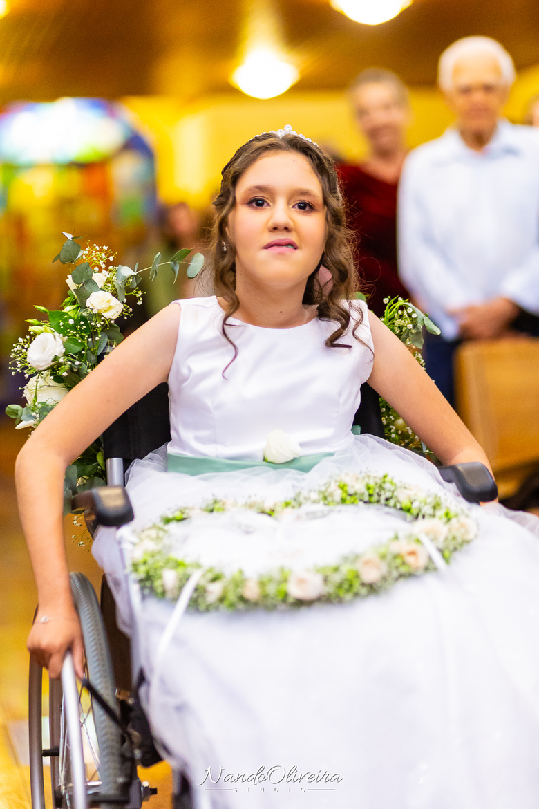A entrada da pequena Alice, afilhada do casal, encantou a todos e trouxe ainda mais ternura para o momento.
