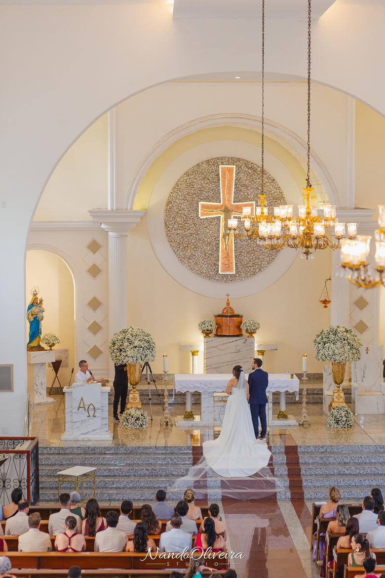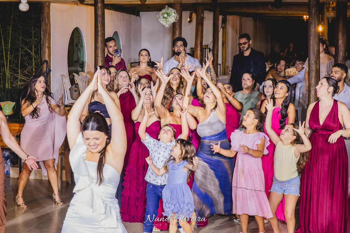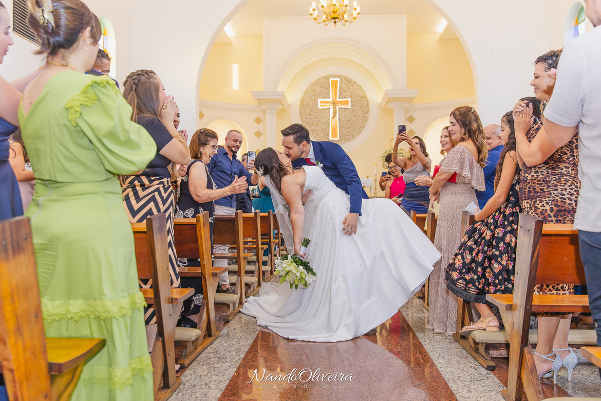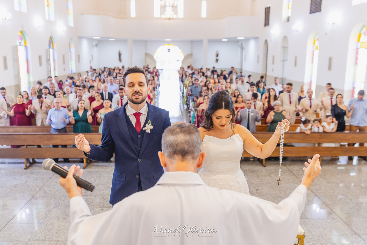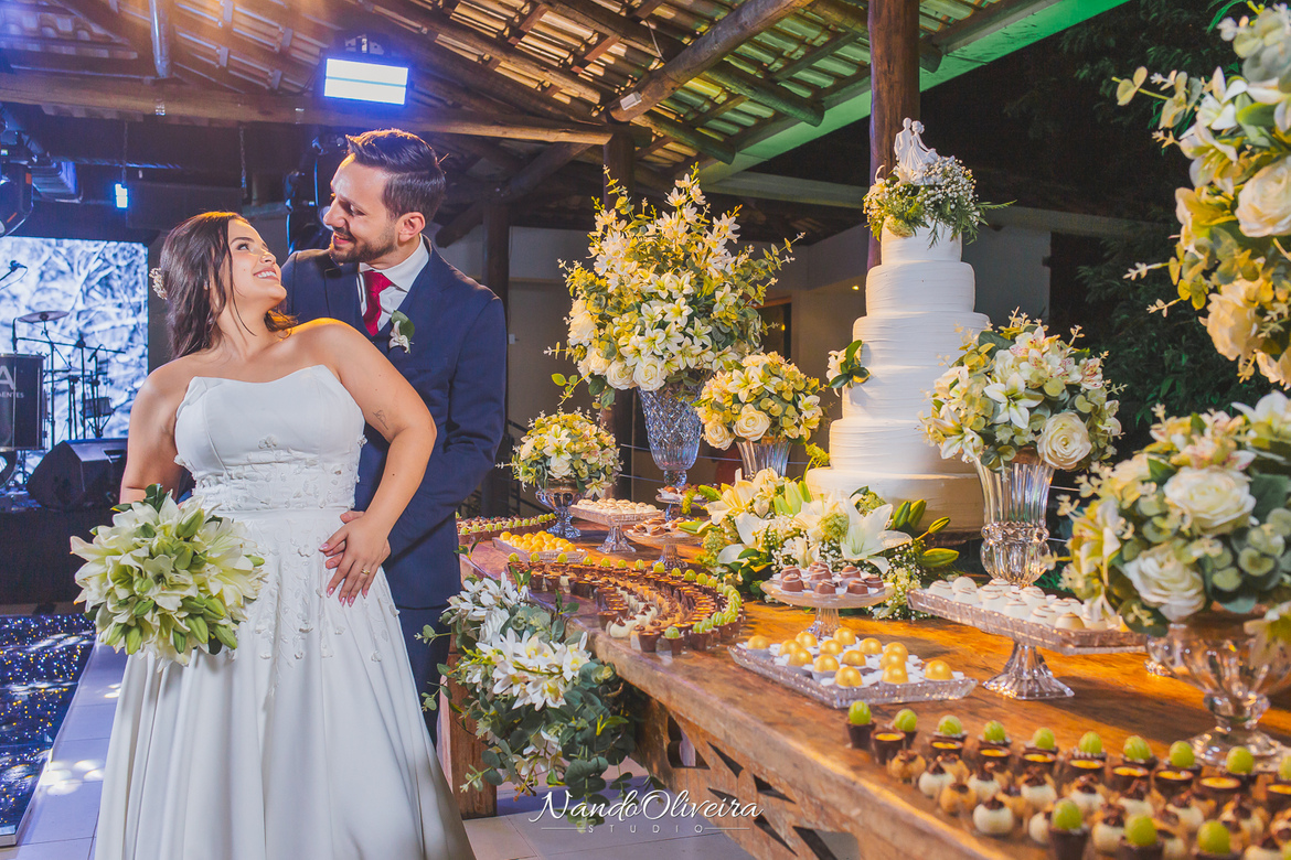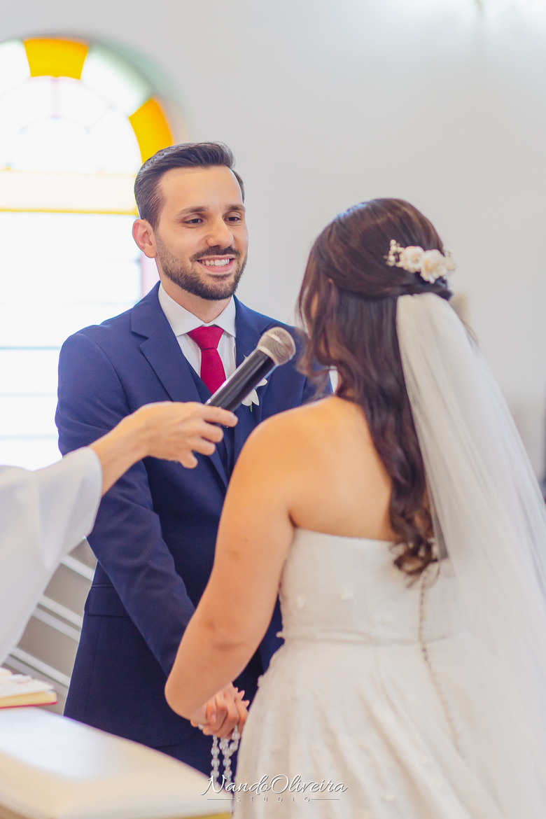 O casal estava radiante, não conseguia conter os sorrisos. A conexão entre eles era evidente em cada olhar, em cada gesto. Uma cerimônia linda. E um dos momentos mais especiais: a pequena Sophia, filha do Mateus, foi quem levou as alianças. Delicadeza, doçura e muito simbolismo nesse instante tão único.
