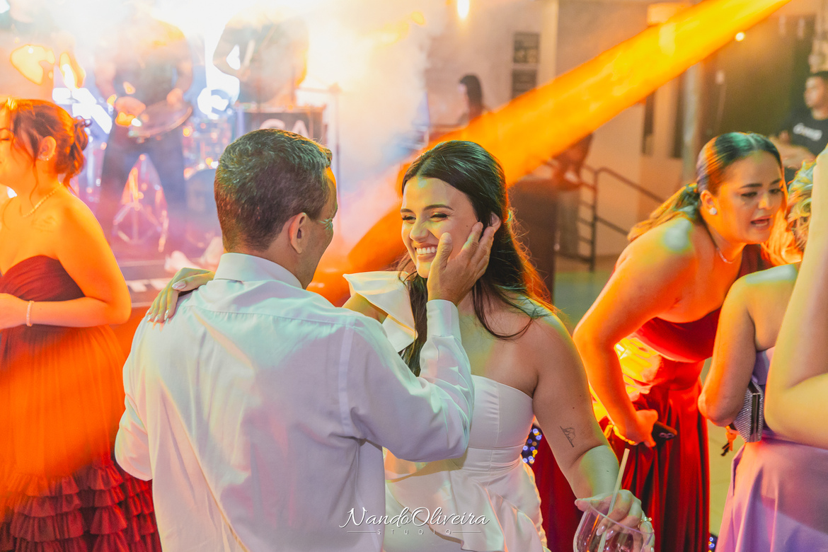 Um dia marcado por uma mistura intensa de tensão e alegria. Aquela ansiedade gostosa antes da cerimônia. O pai da Maria Eduarda estava visivelmente emocionado, vivendo cada segundo com o coração apertadinho mais, cheio de orgulho.